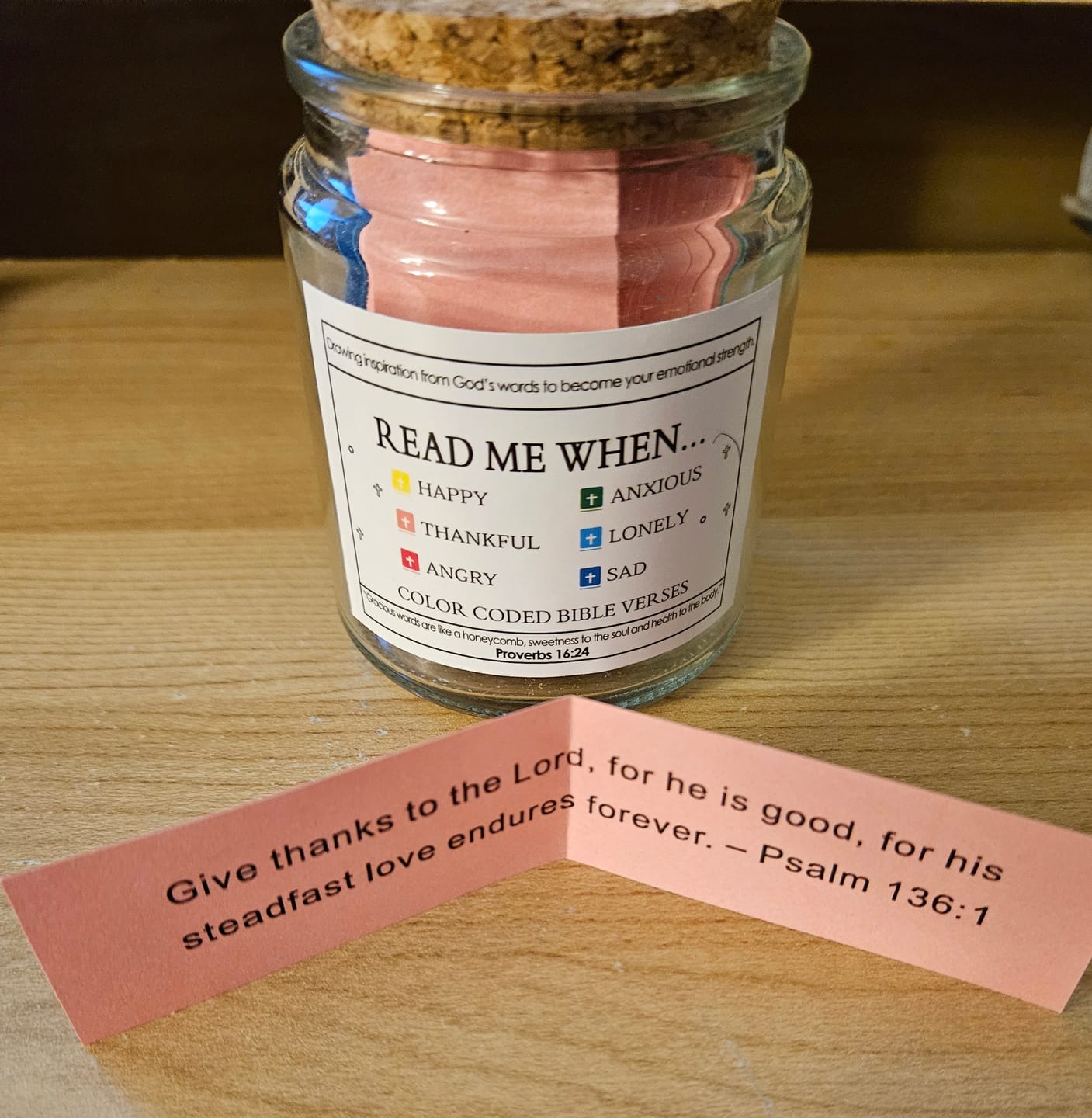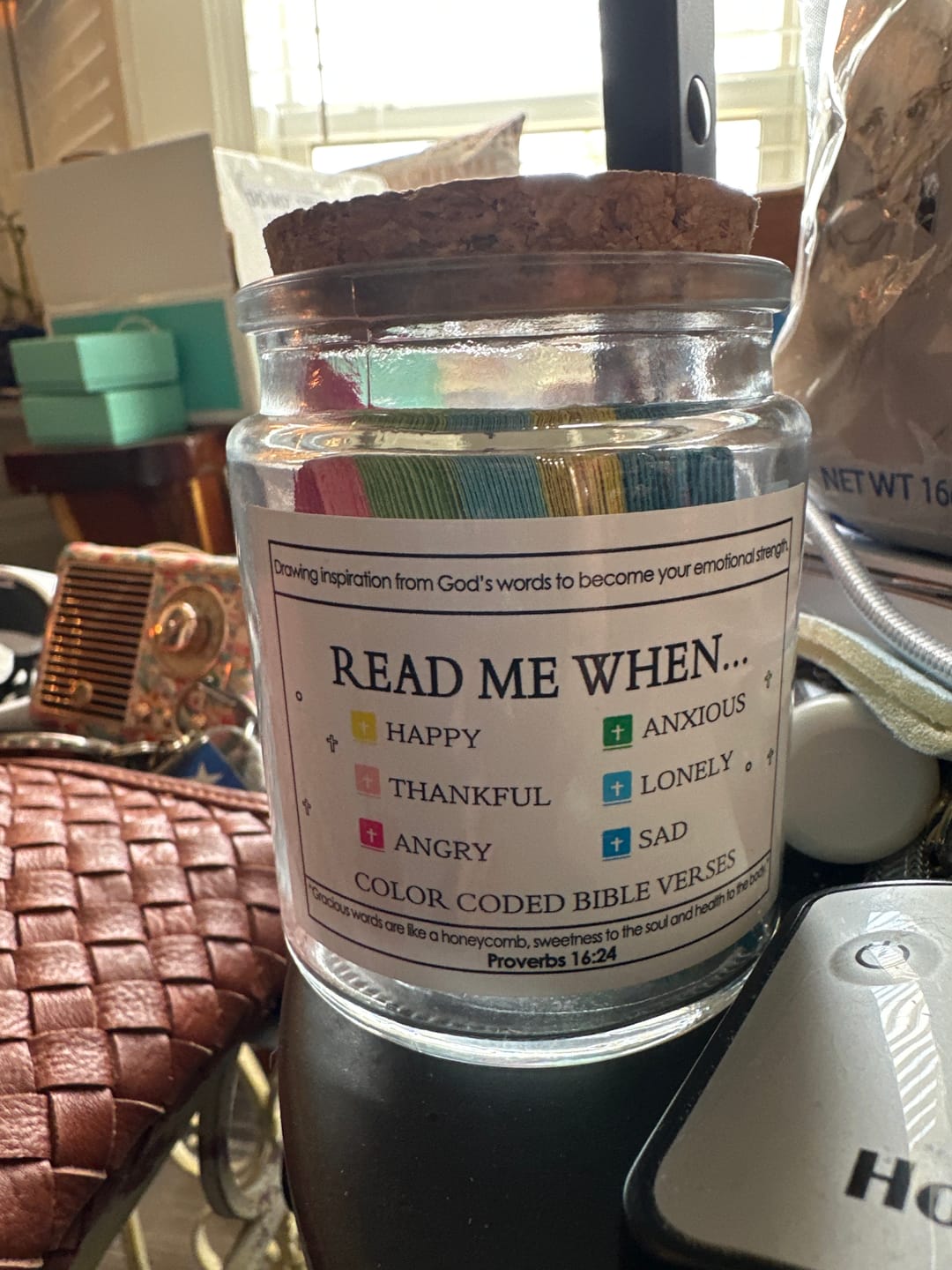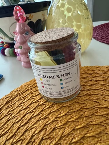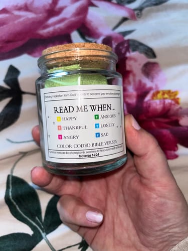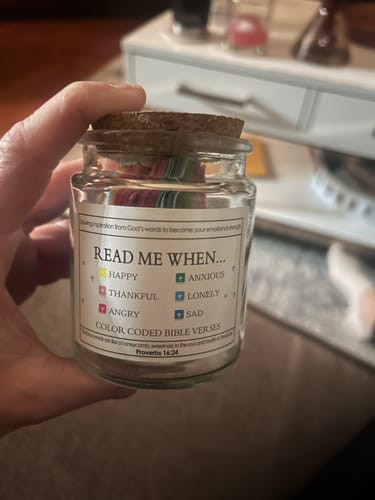 "I love this jar! Whole family picks a verse everyday based on how they feel and then we reflect on our day as speak about our emotions all together, this jar brings my family together and makes us feel special every time..."