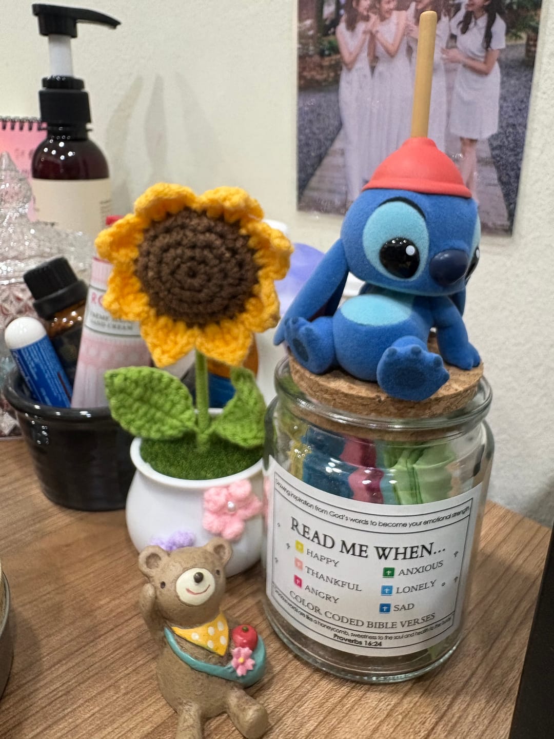 Have given a couple of these as gifts. Here is one I gave at Easter to my sister. She says “The Sweetest gift ever!” She loves it. And I love giving them as gifts. I ordered 6 of them and have kept one for myself and given two as gifts. Thanks for bringing bible verses to me and my family and friends, daily…in times of need and happiness.